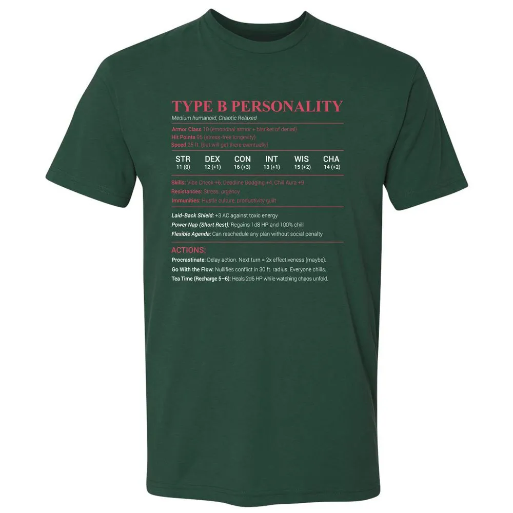 Type B Stats Premium Unisex T-Shirt - Forest Green - 13
