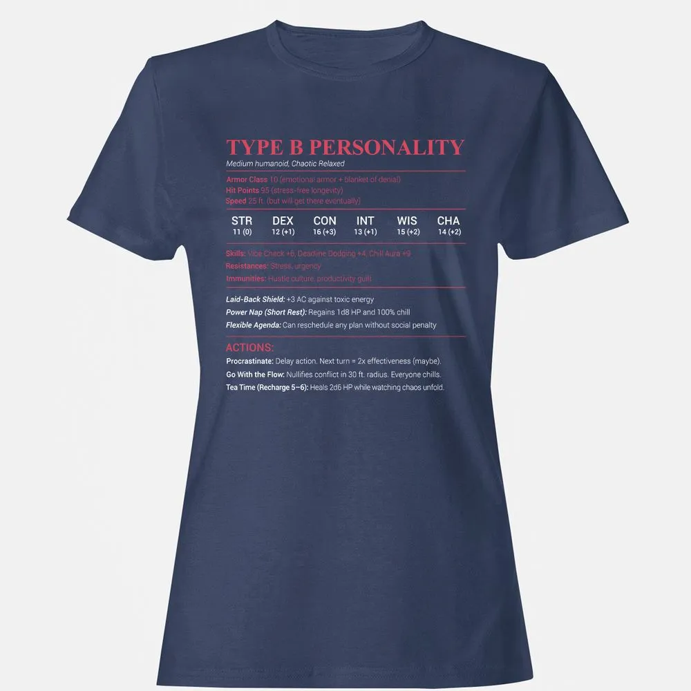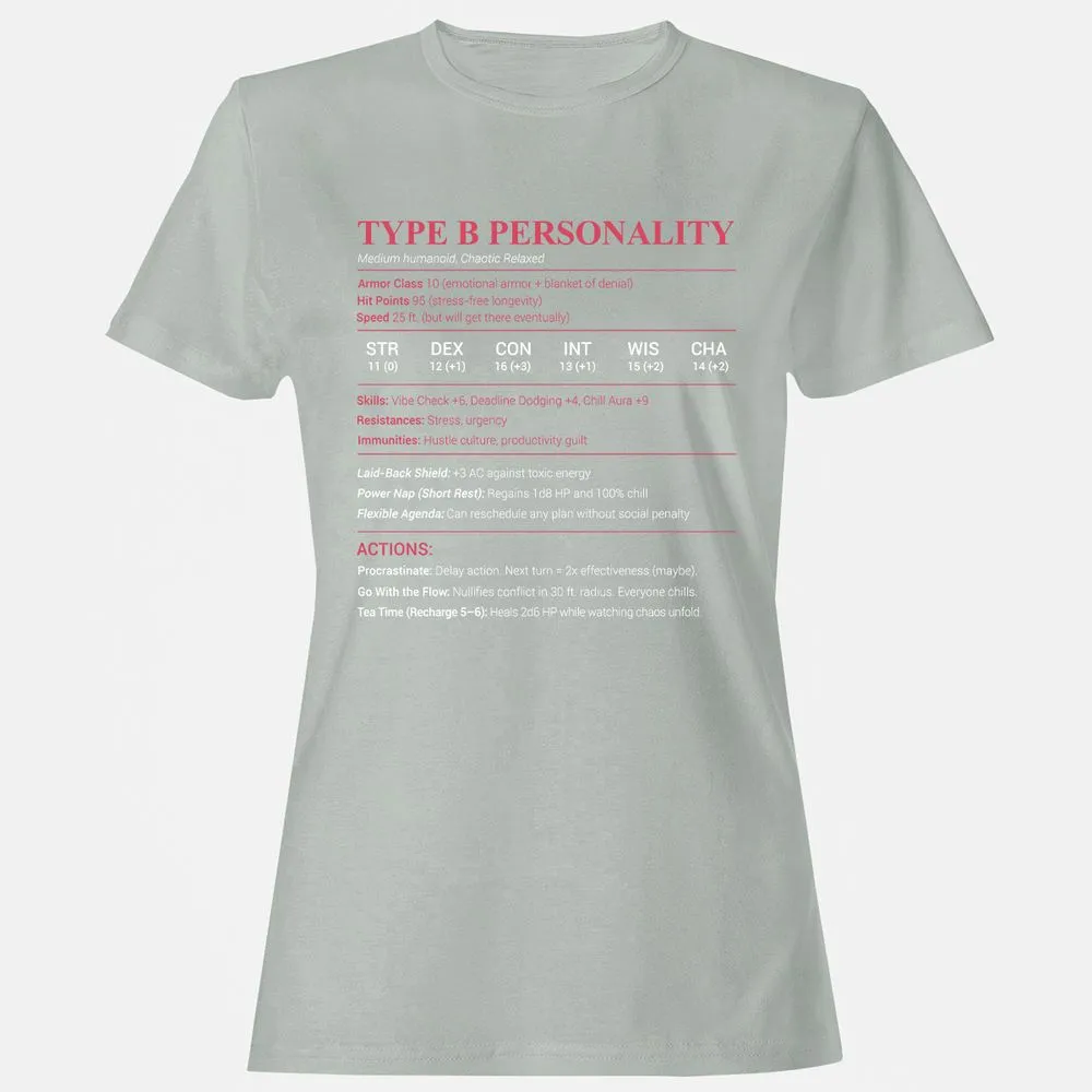 Type B Stats Women's T-Shirt - Light Blue - 8