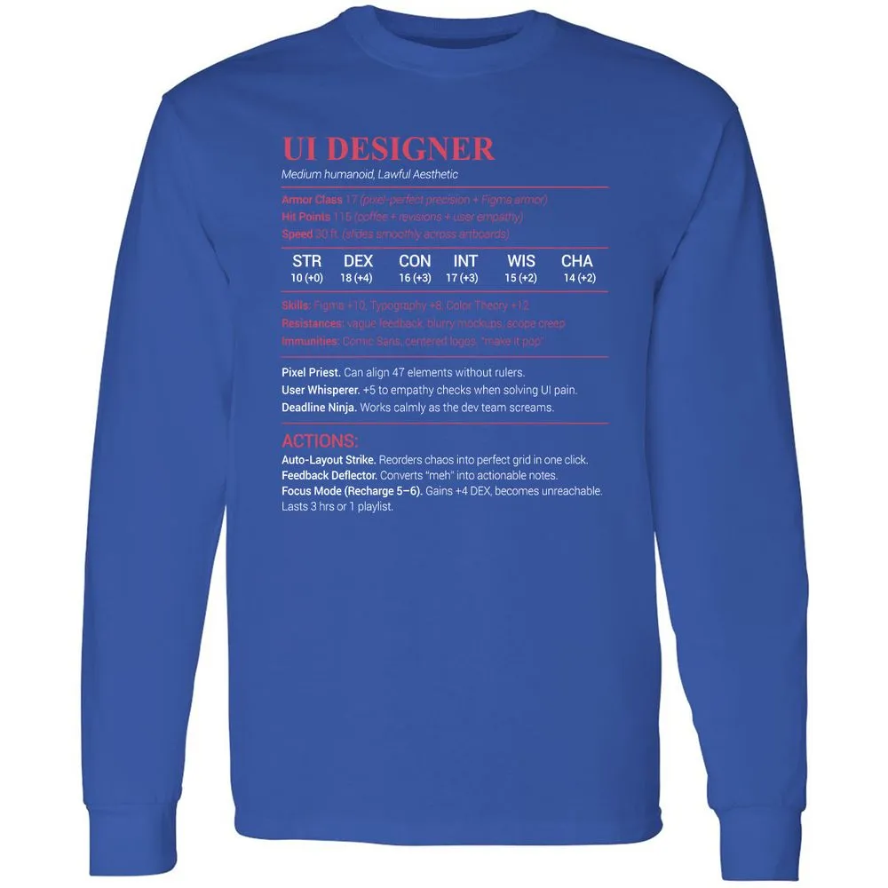UI Designer Long Sleeve T-Shirt - Royal - 8