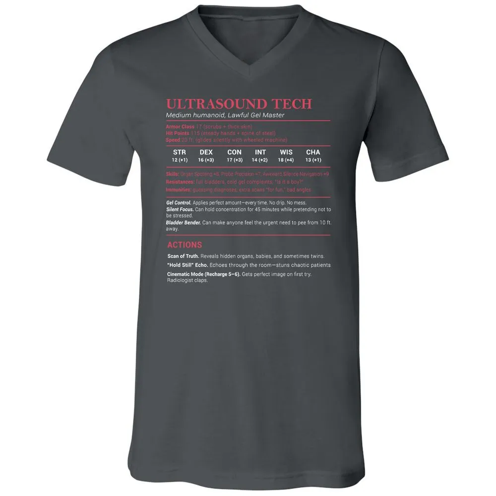 Ultrasound Tech Stats Unisex V-Neck T-Shirt - Asphalt - 12