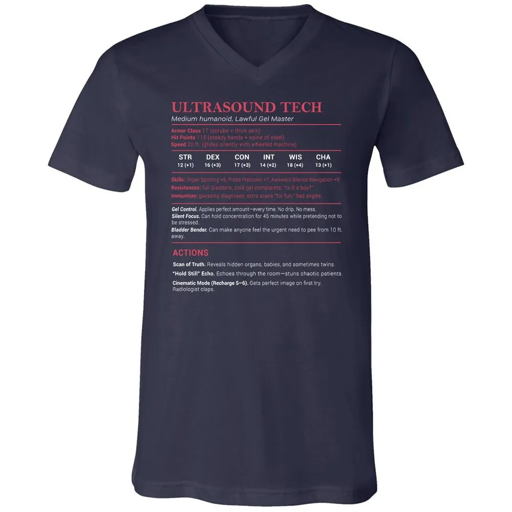 Ultrasound Tech Stats Unisex V-Neck T-Shirt - Heather Navy - 15