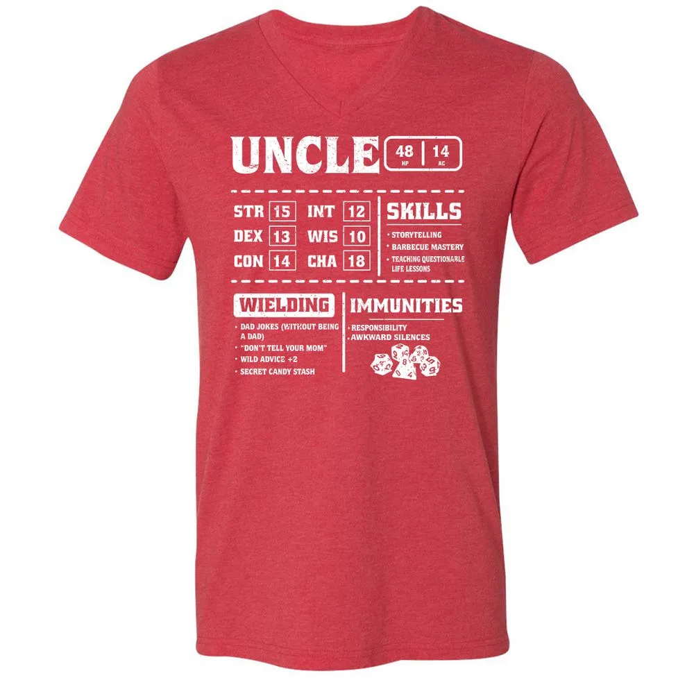 Uncle Stats Unisex V-Neck T-Shirt - Heather Red - 16