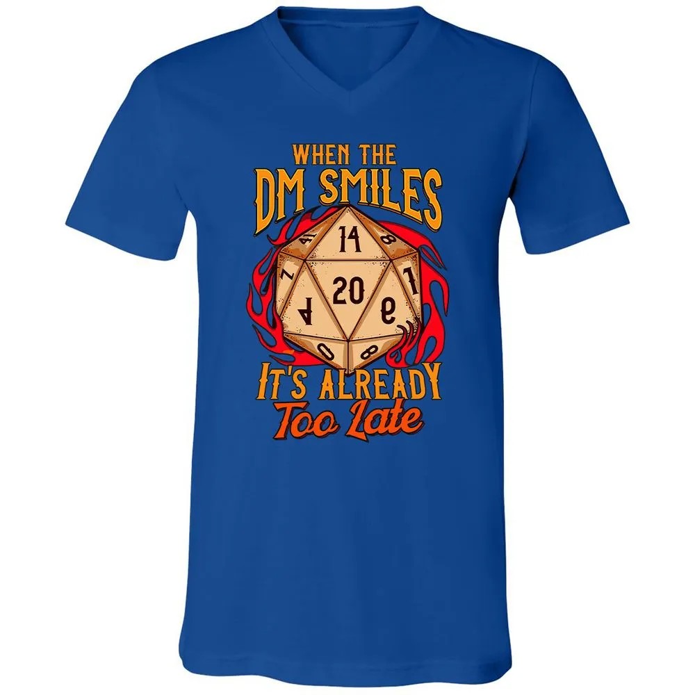 When the DM Smiles It's Already Too Late Unisex V-Neck T-Shirt - Heather True Royal - 14