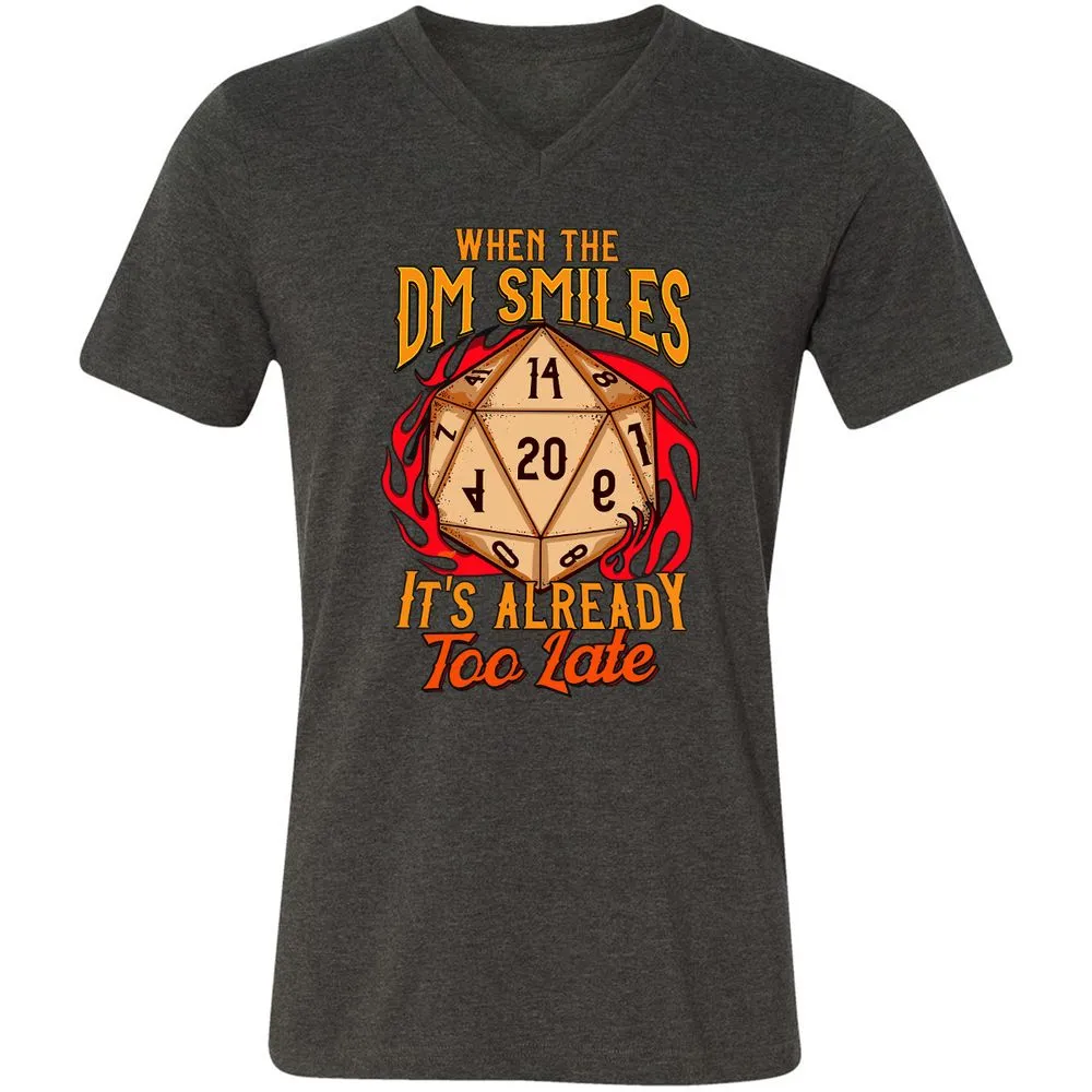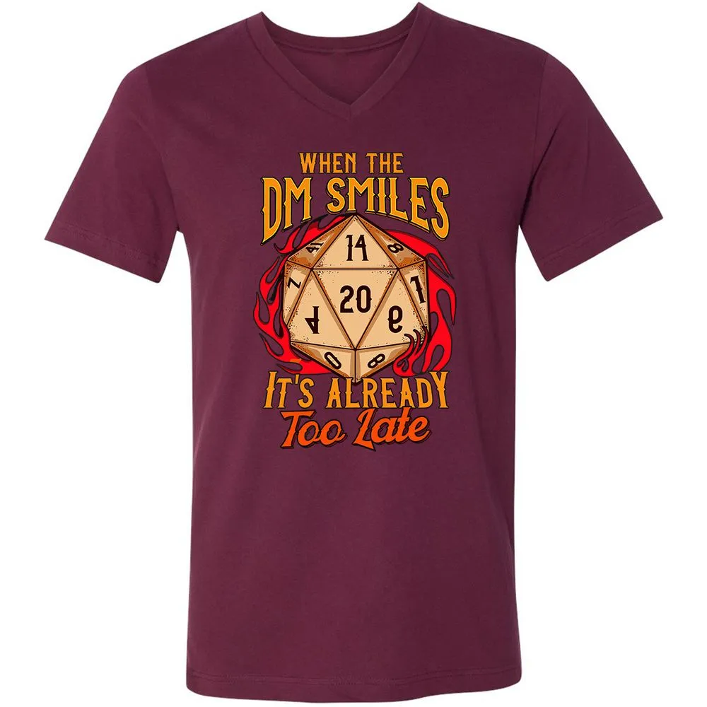 When the DM Smiles It's Already Too Late Unisex V-Neck T-Shirt - Heather Red - 16
