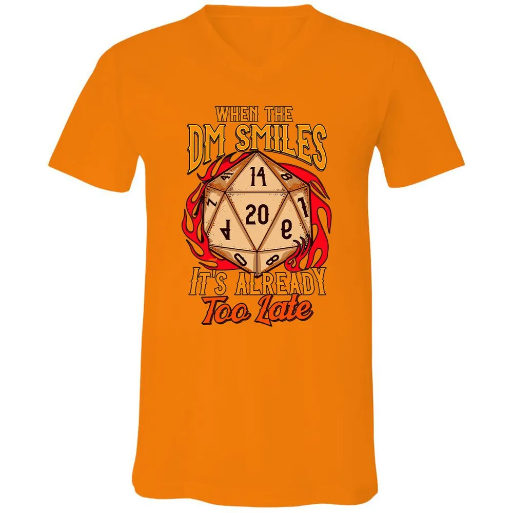 When the DM Smiles It's Already Too Late Unisex V-Neck T-Shirt - Orange - 11