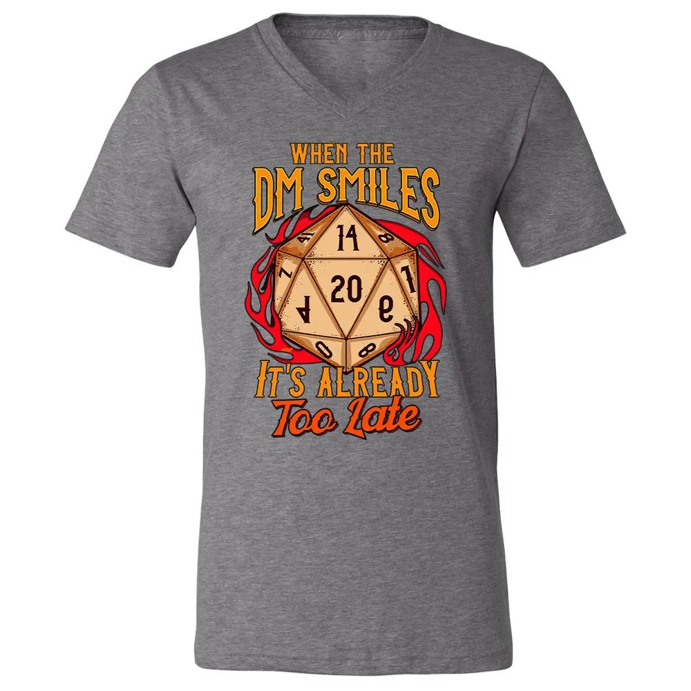 When the DM Smiles It's Already Too Late Unisex V-Neck T-Shirt - Asphalt - 12