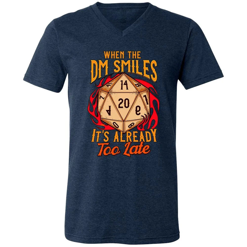 When the DM Smiles It's Already Too Late Unisex V-Neck T-Shirt - Heather Navy - 15