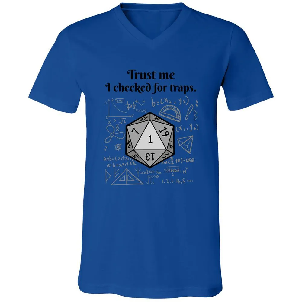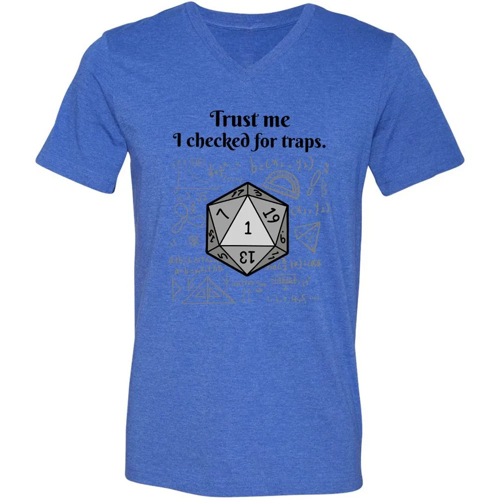 Trust me, I checked for traps. Unisex V-Neck T-Shirt - Heather True Royal - 14