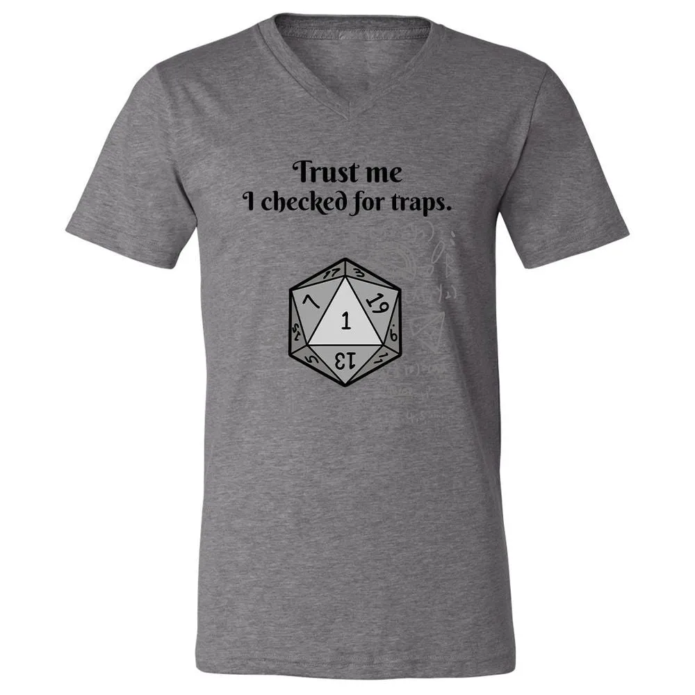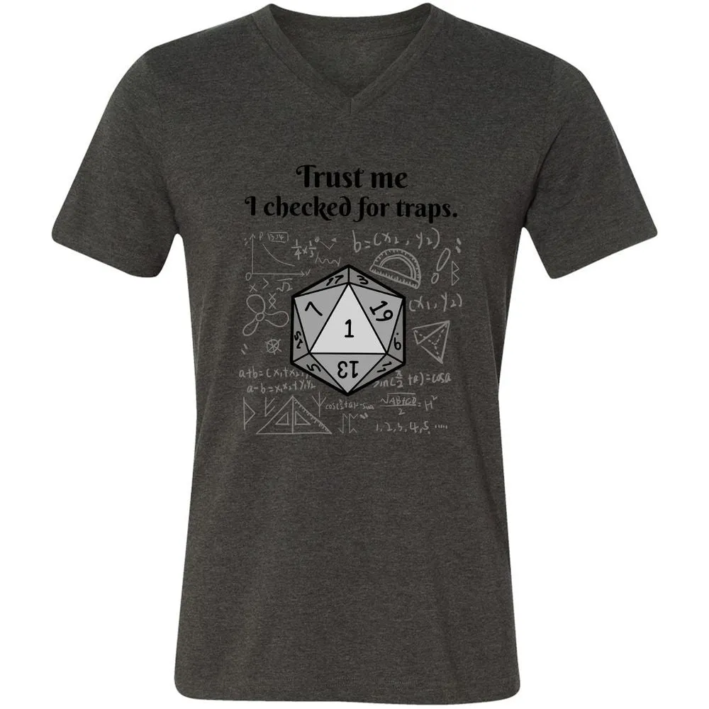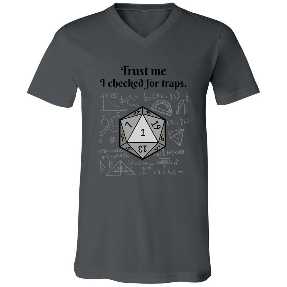 Trust me, I checked for traps. Unisex V-Neck T-Shirt - Dark Grey Heather - 8