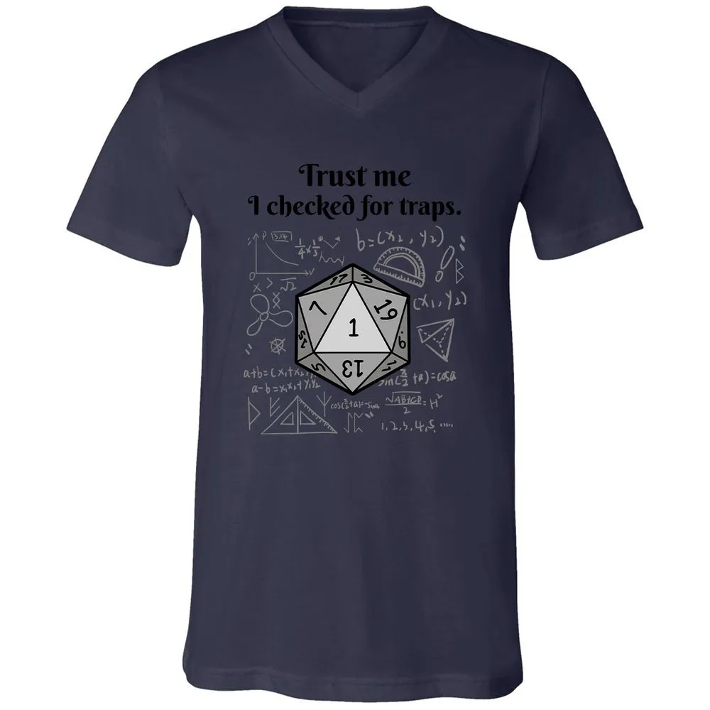 Trust me, I checked for traps. Unisex V-Neck T-Shirt - Navy - 9
