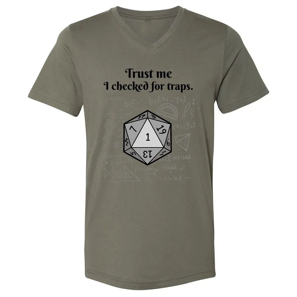 Trust me, I checked for traps. Unisex V-Neck T-Shirt - Military Green - 10