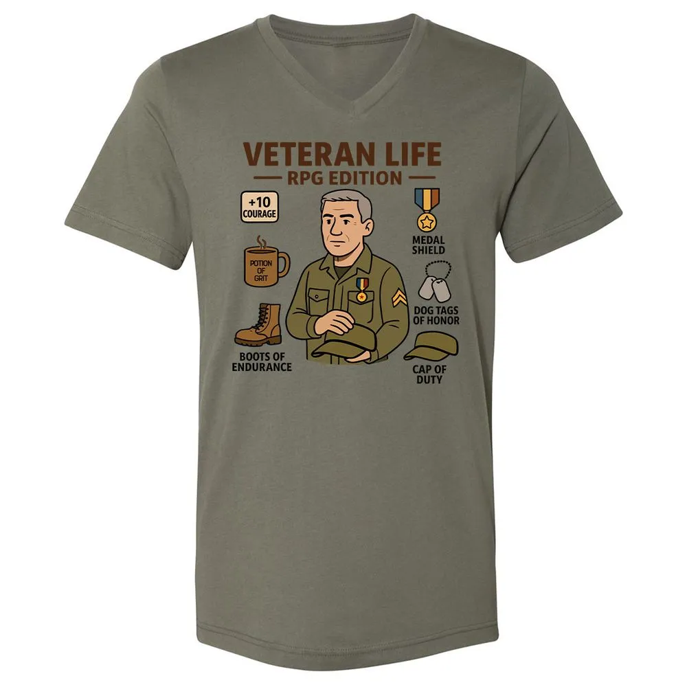 Veteran Life RPG Edition Unisex V-Neck T-Shirt - Military Green - 10