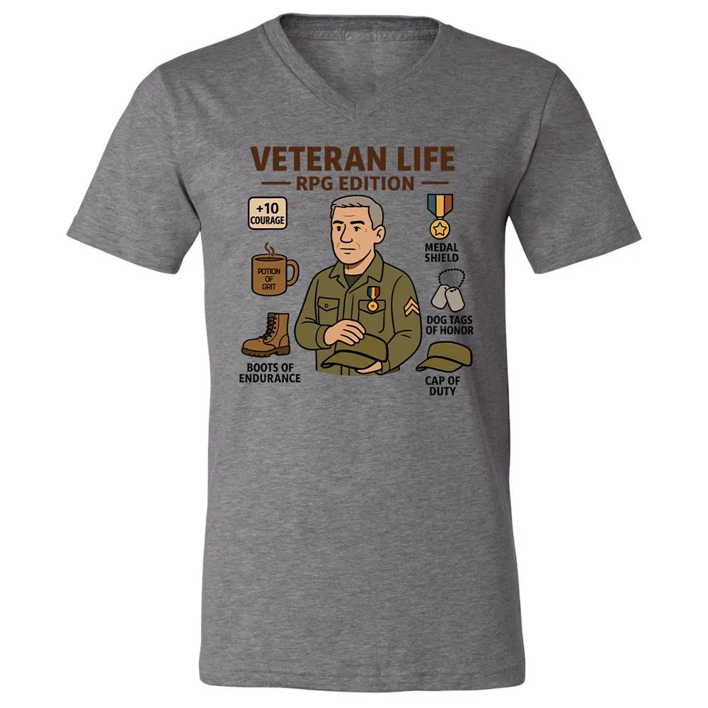Veteran Life RPG Edition Unisex V-Neck T-Shirt - Athletic Heather - 7