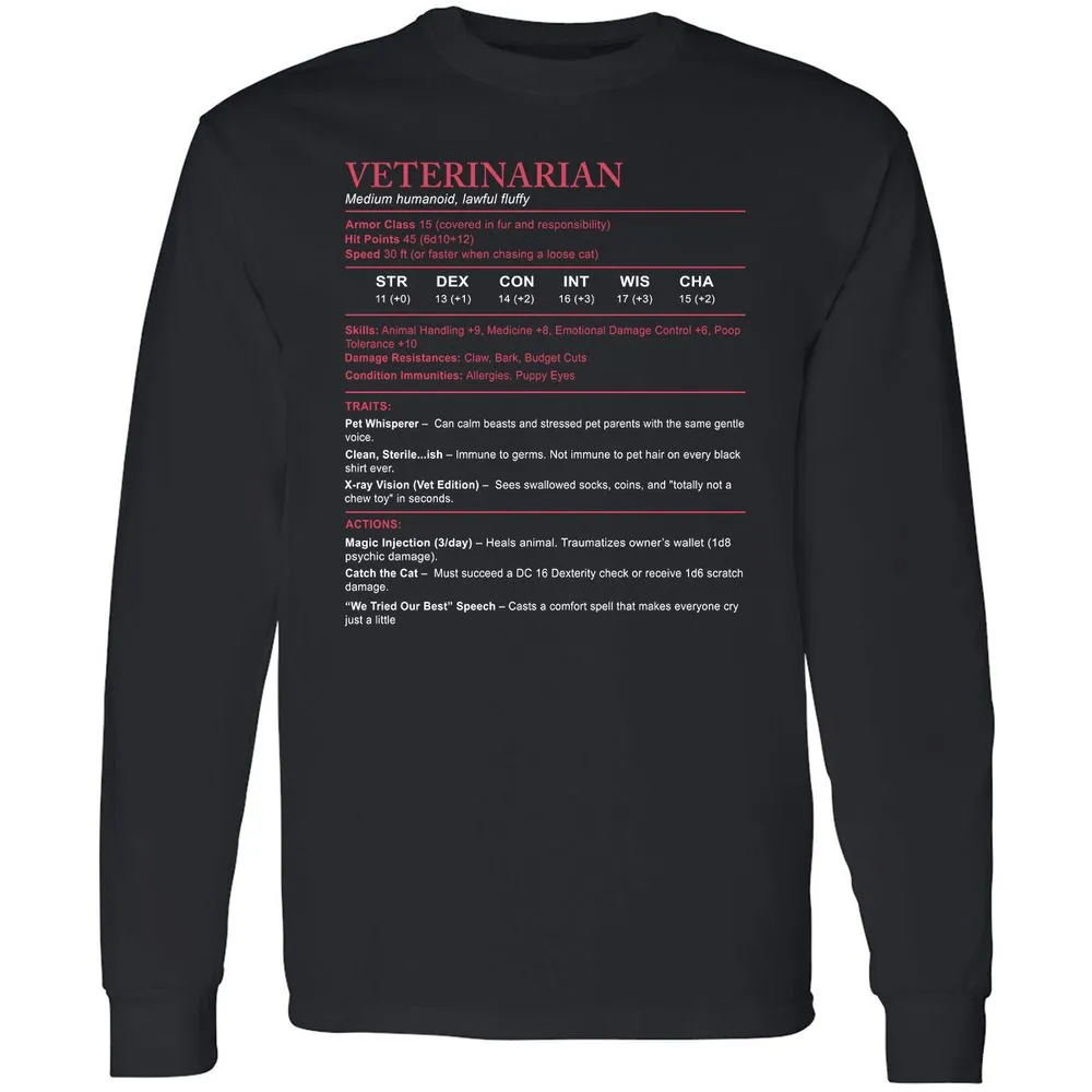 Veterinarian Stats Long Sleeve T-Shirt - Black - 1