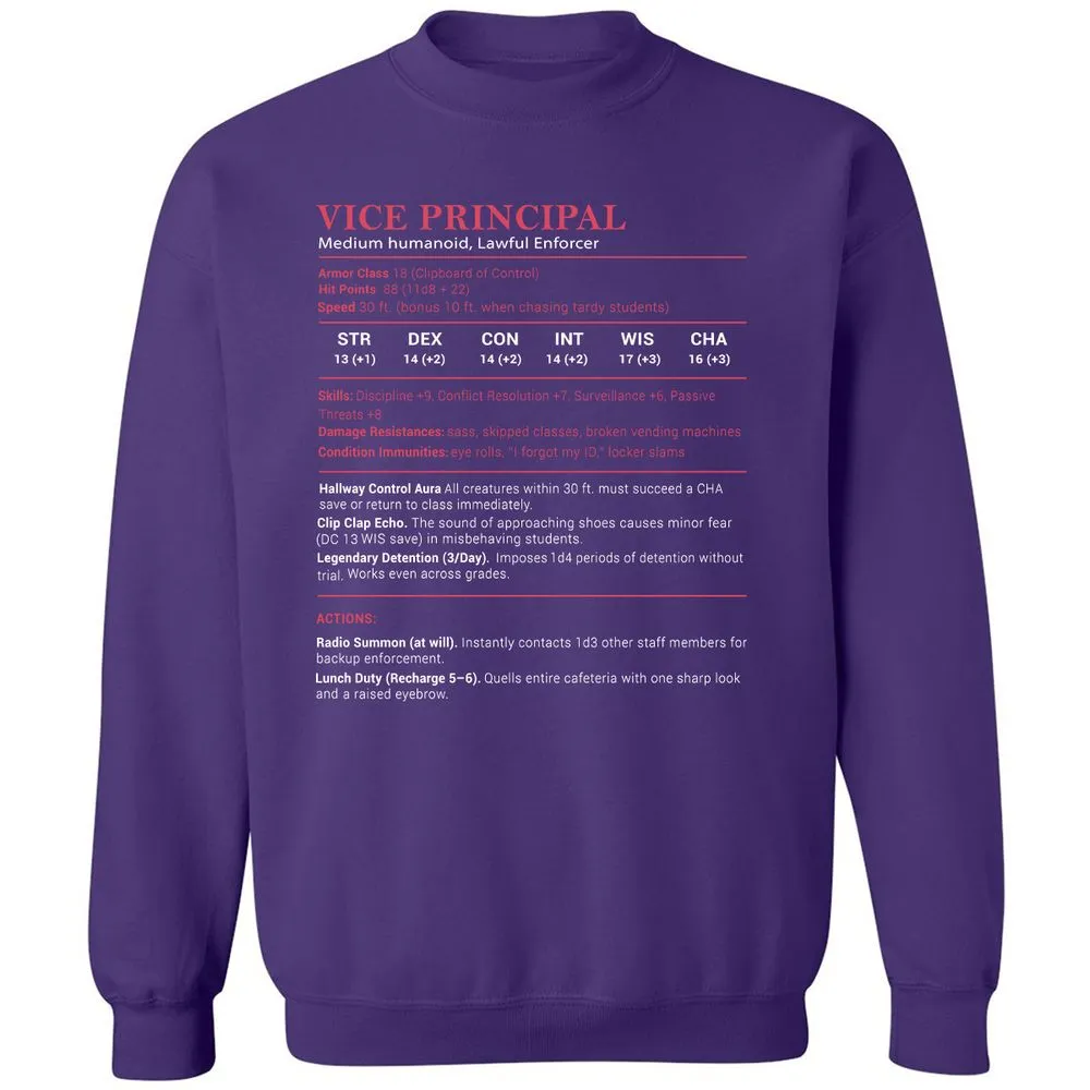Vice Principal Stats Classic Unisex Sweatshirt - Purple - 6
