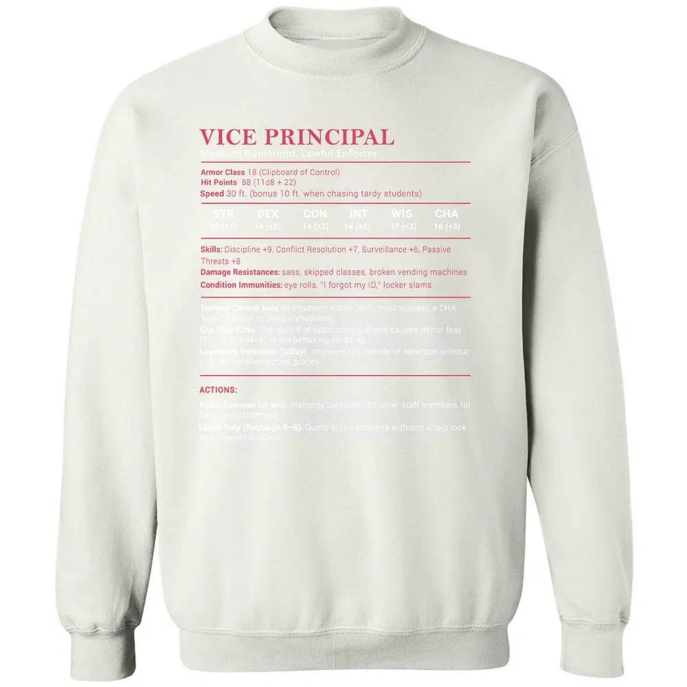 Vice Principal Stats Classic Unisex Sweatshirt - White - 12