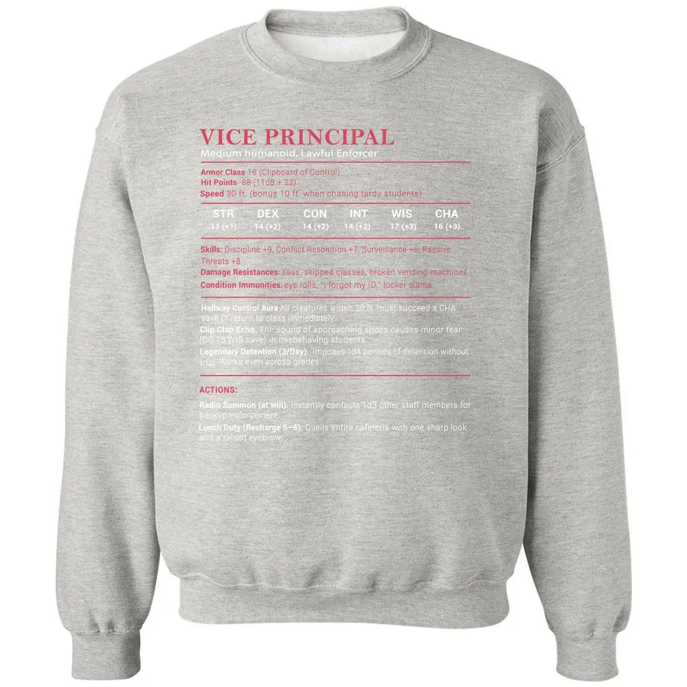 Vice Principal Stats Classic Unisex Sweatshirt - Ash - 8