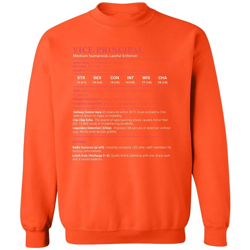 Vice Principal Stats Classic Unisex Sweatshirt - Orange - 10