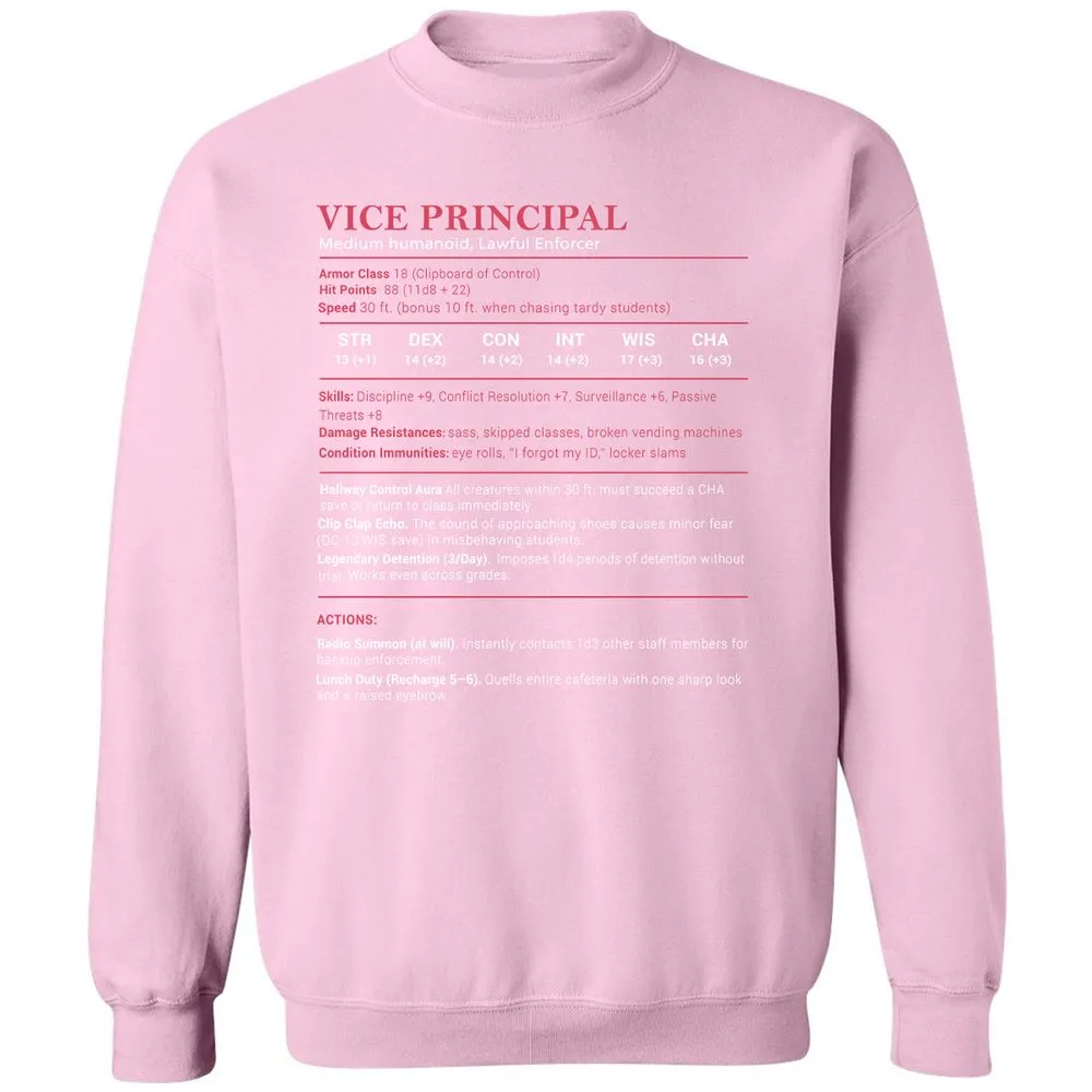 Vice Principal Stats Classic Unisex Sweatshirt - Light Pink - 3