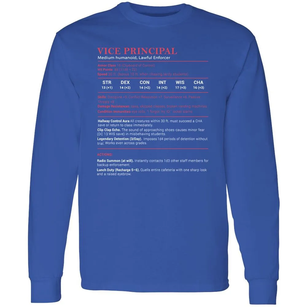 Vice Principal Stats Long Sleeve T-Shirt - Royal - 8