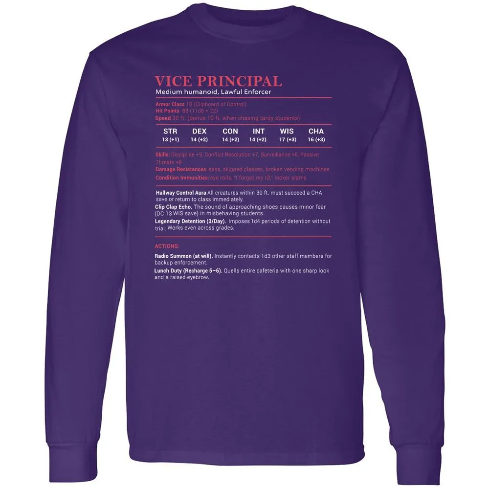 Vice Principal Stats Long Sleeve T-Shirt - Purple - 13
