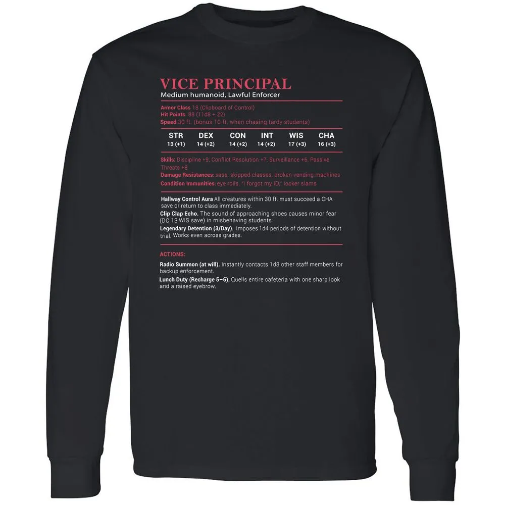 Vice Principal Stats Long Sleeve T-Shirt