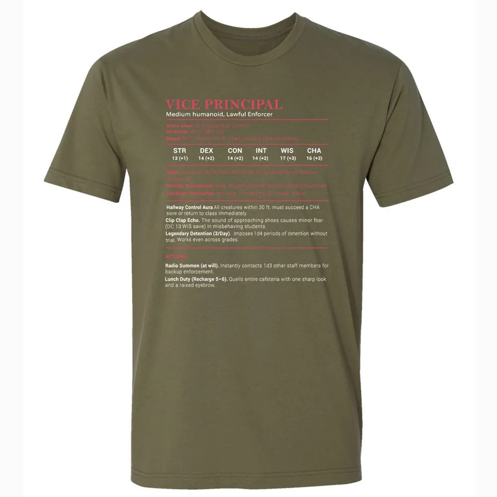 Vice Principal Stats Premium Unisex T-Shirt - Military Green - 5