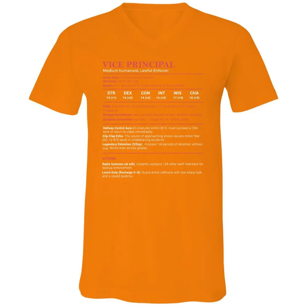Vice Principal Stats Unisex V-Neck T-Shirt - Orange - 11