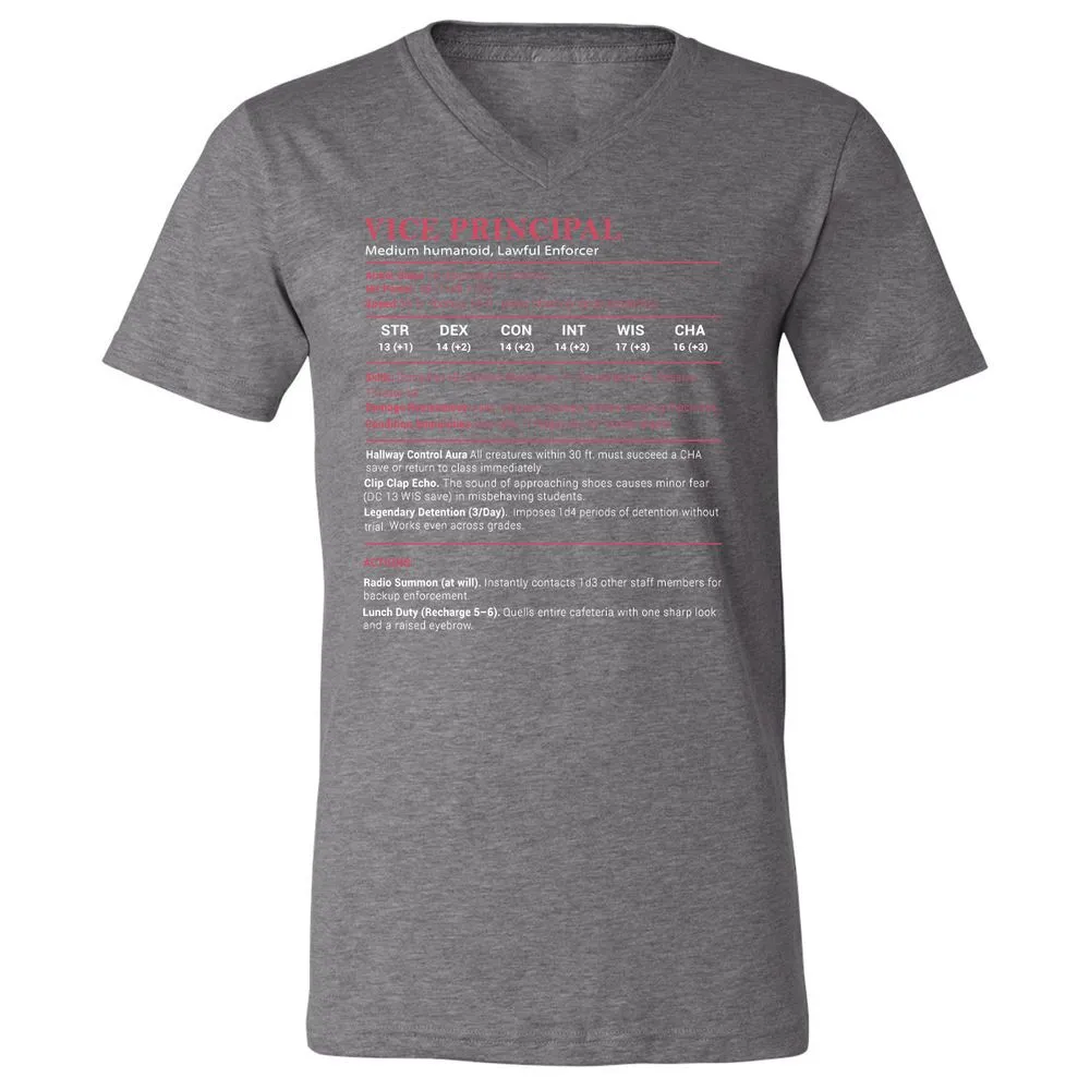 Vice Principal Stats Unisex V-Neck T-Shirt - Asphalt - 12
