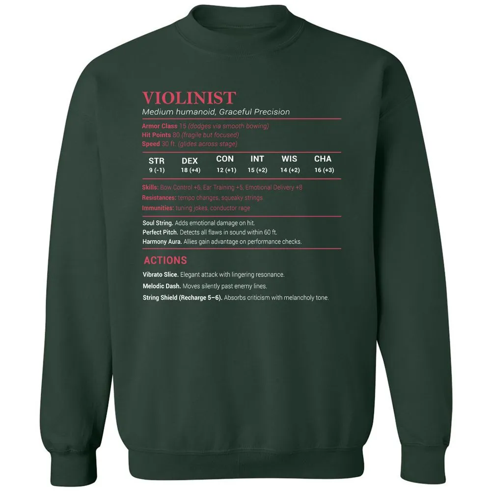 Violinist Stats Classic Unisex Sweatshirt - Forest Green - 4