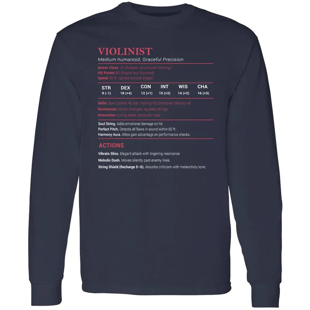 Violinist Stats Long Sleeve T-Shirt - Navy - 2