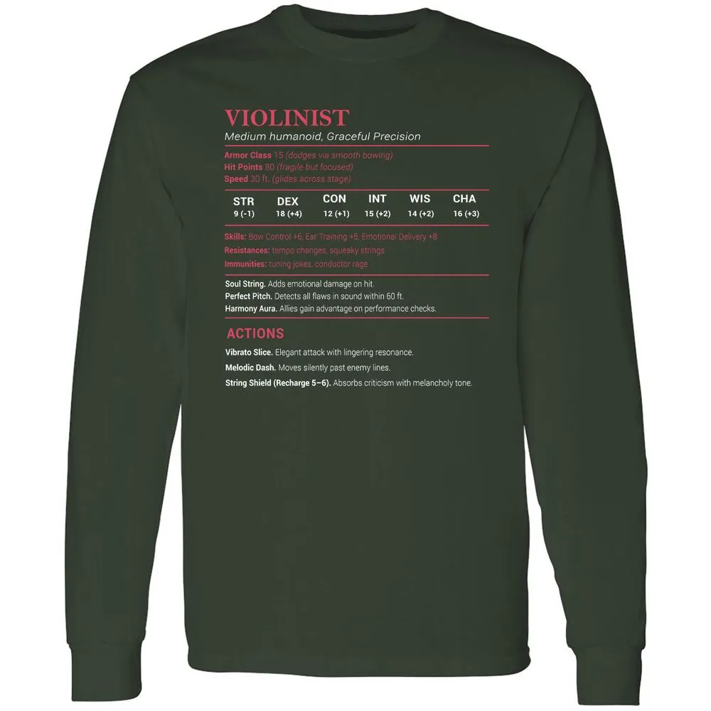 Violinist Stats Long Sleeve T-Shirt - Forest Green - 4