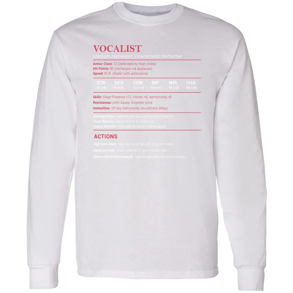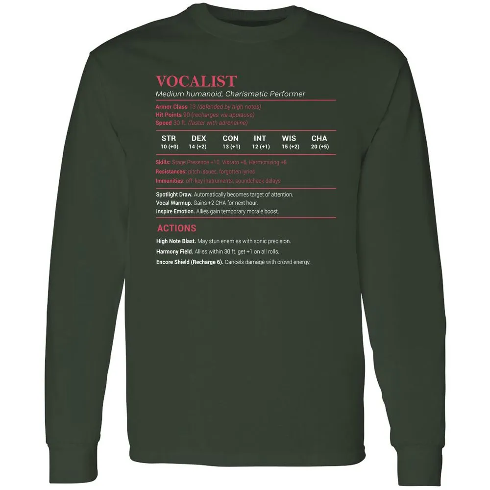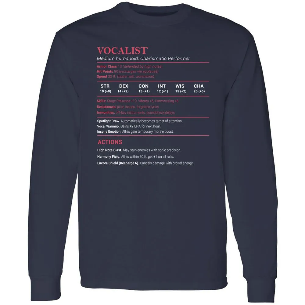 Vocalist Stats Long Sleeve T-Shirt - Dark Heather - 15
