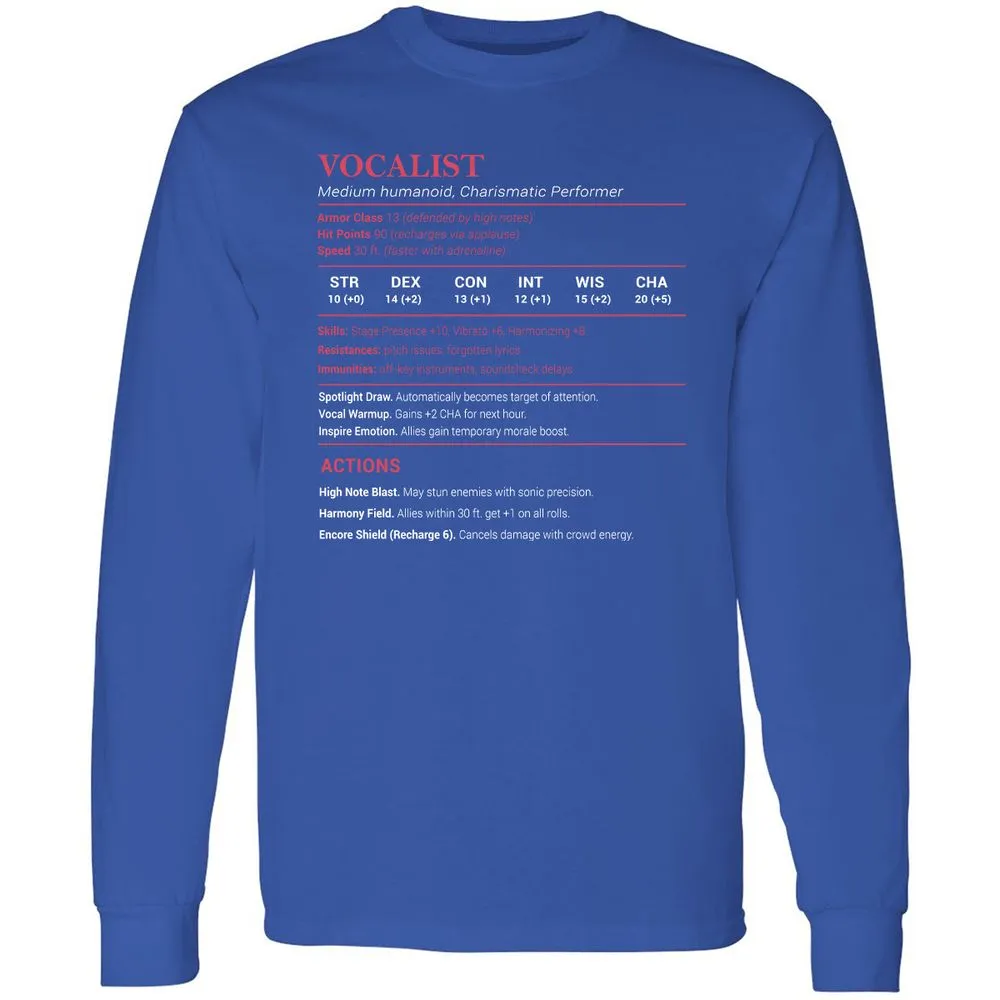 Vocalist Stats Long Sleeve T-Shirt - Royal - 8