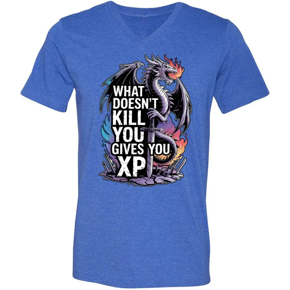 What Doesn't Kill You Dragon Unisex V-Neck T-Shirt - Heather True Royal - 14