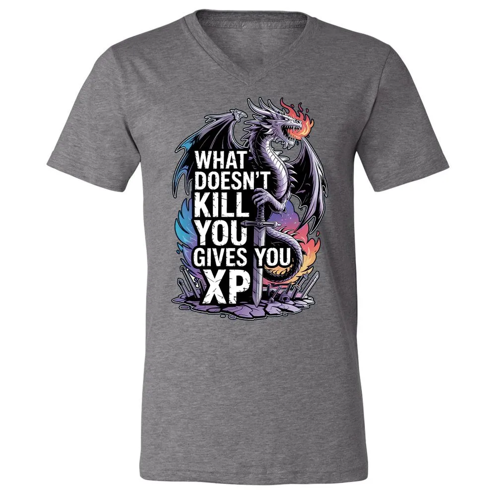 What Doesn't Kill You Dragon Unisex V-Neck T-Shirt - Athletic Heather - 7
