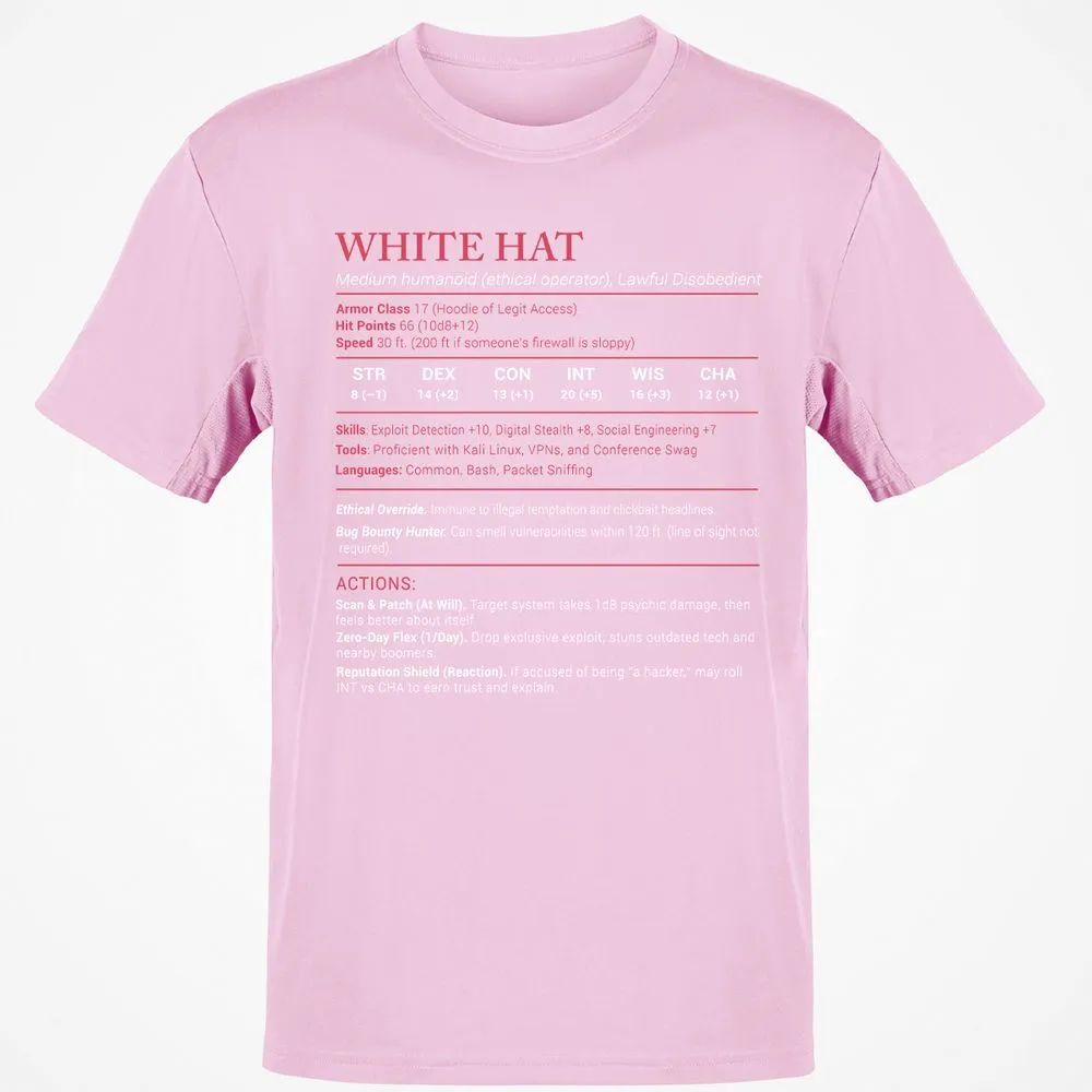 White Hat Stats Classic Unisex T-Shirt - Light Pink - 5