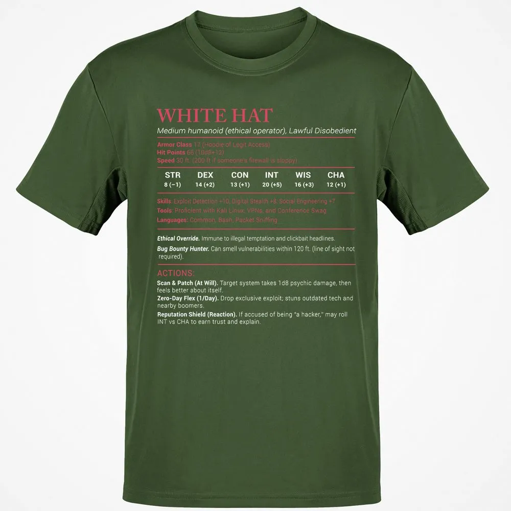 White Hat Stats Classic Unisex T-Shirt - Military Green - 6
