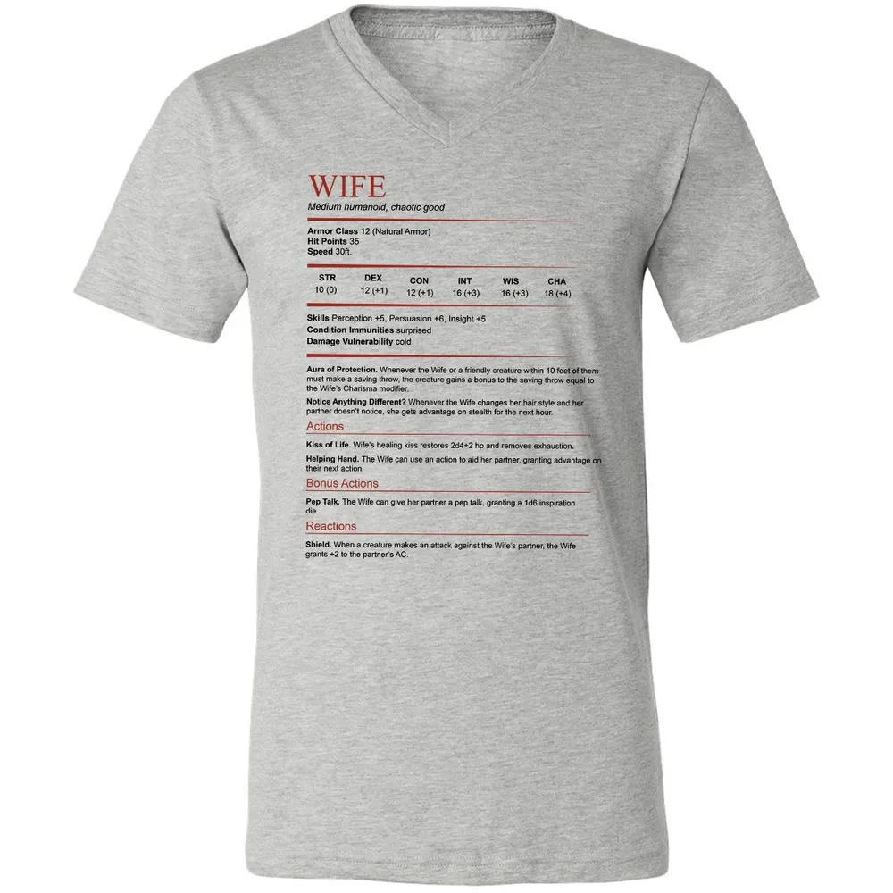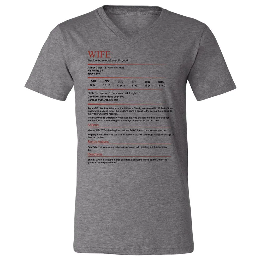 Wife White Unisex V-Neck T-Shirt - Dark Grey Heather - 8