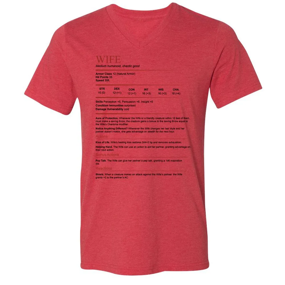 Wife White Unisex V-Neck T-Shirt - Heather Red - 5